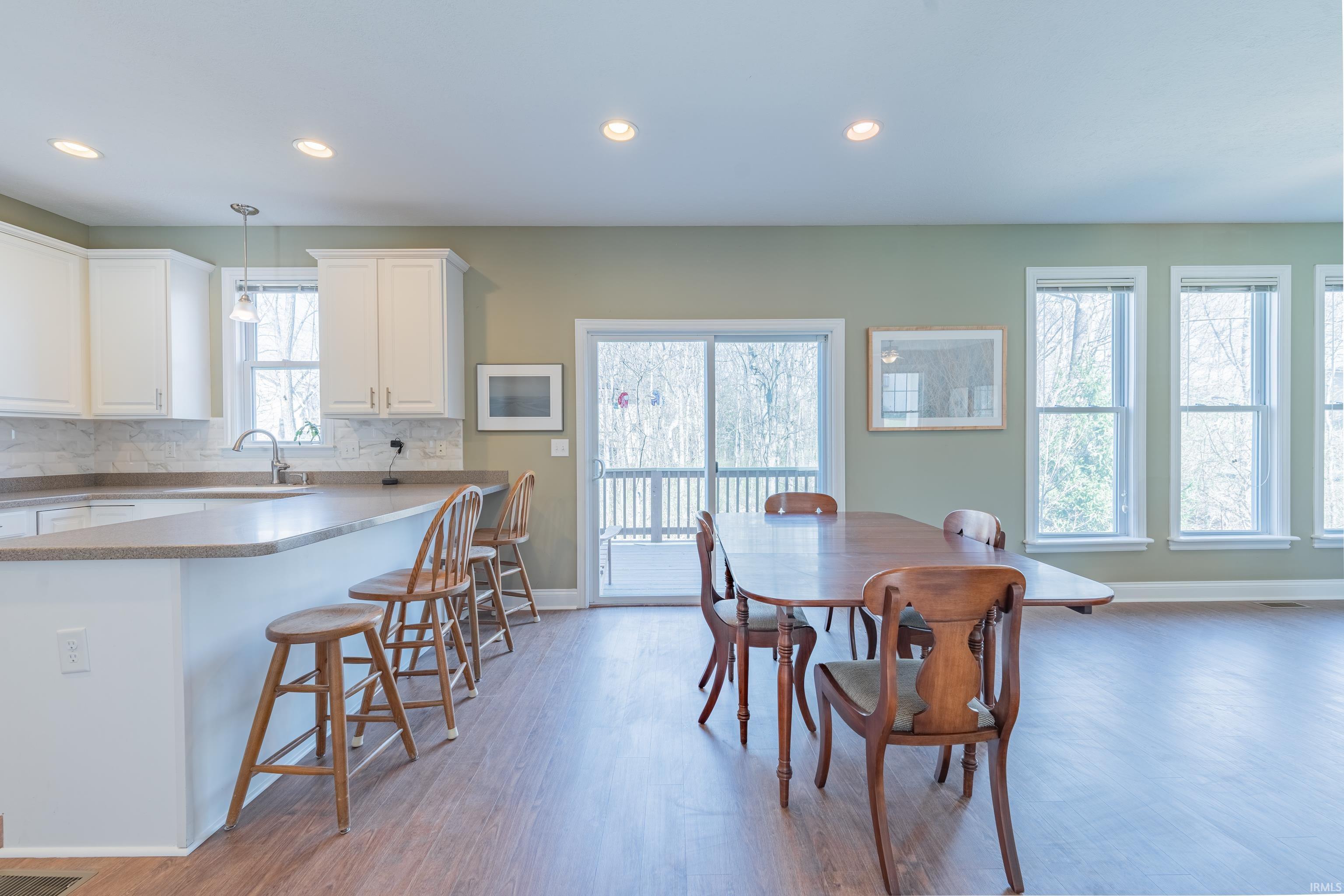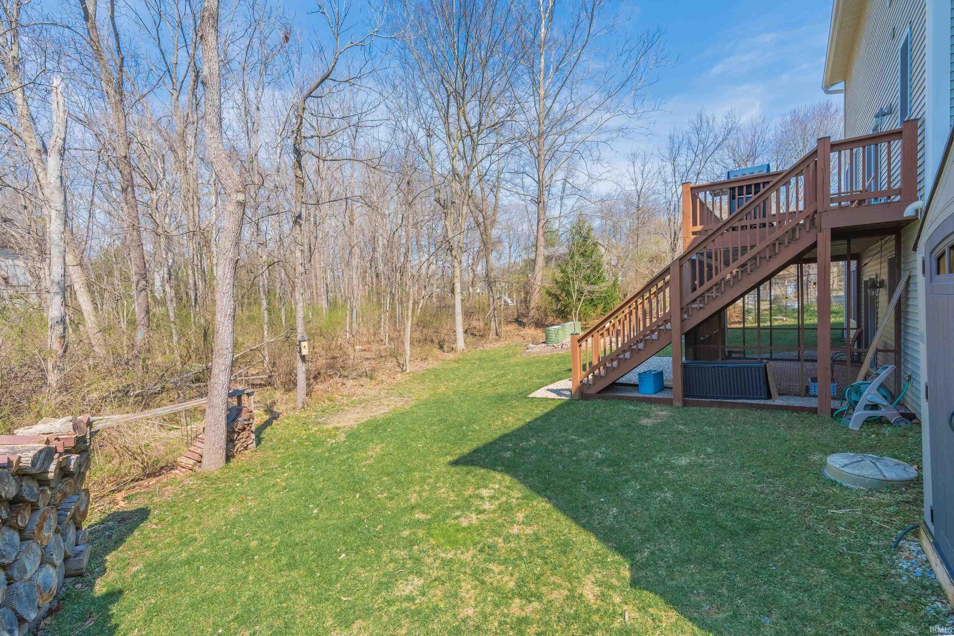Spacious and versatile, this beautifully updated two-story home over a full finished walkout basement offers room to live, work, and entertain with ease. Featuring 4 bedrooms and 3.5 baths, the layout is both functional and inviting. The main level boasts all-new LVP flooring and a large living room centered around a cozy fireplace. A dedicated dining room provides flexibility and is currently used as a home office. Just off the kitchen/dining area, step out onto a generous deck, perfect for outdoor dining. Upstairs, the primary suite is a true retreat with a vaulted ceiling and a private ensuite bath. The finished walkout basement adds even more living space and opens to a screened porch, offering a peaceful spot to unwind while enjoying the tree-lined backyard. Located on Bloomington’s desirable east side on a cul-de-sac, this home is just minutes from Indiana University, shopping, dining, and local parks—combining comfort, convenience, and a prime location.