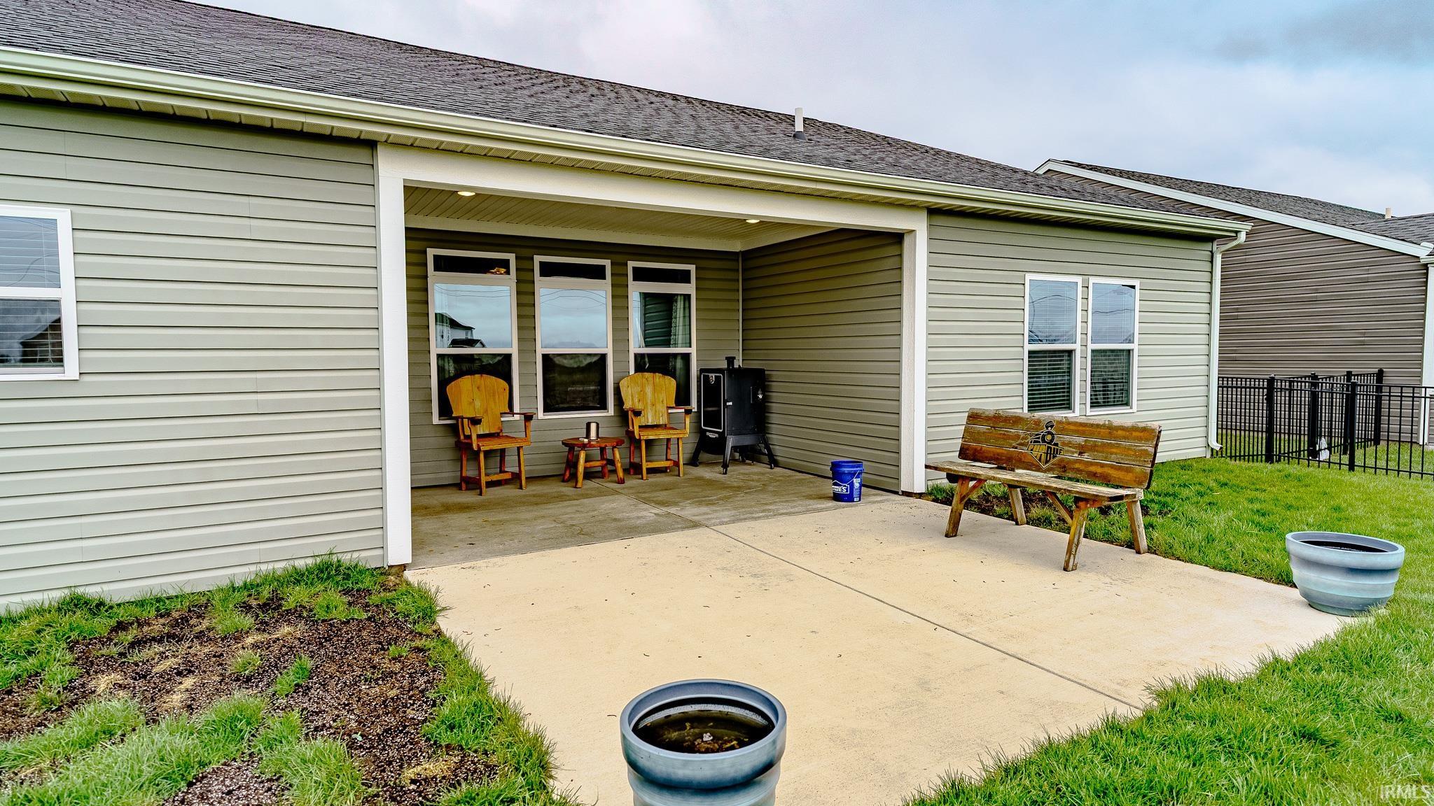 Move in ready 3 bedroom, 2 bath home with open concept and covered back porch and large patio. Fenced in yard to add to the outdoor enjoyment. Kitchen features a large island with seating, upgraded custom cabinetry, quartz countertops, stainless steel appliances and pantry. Primary suite features a walk in closet, dual vanity, and walk in shower. Conveniently located close to schools and interstate access. Easy drive to Purdue University