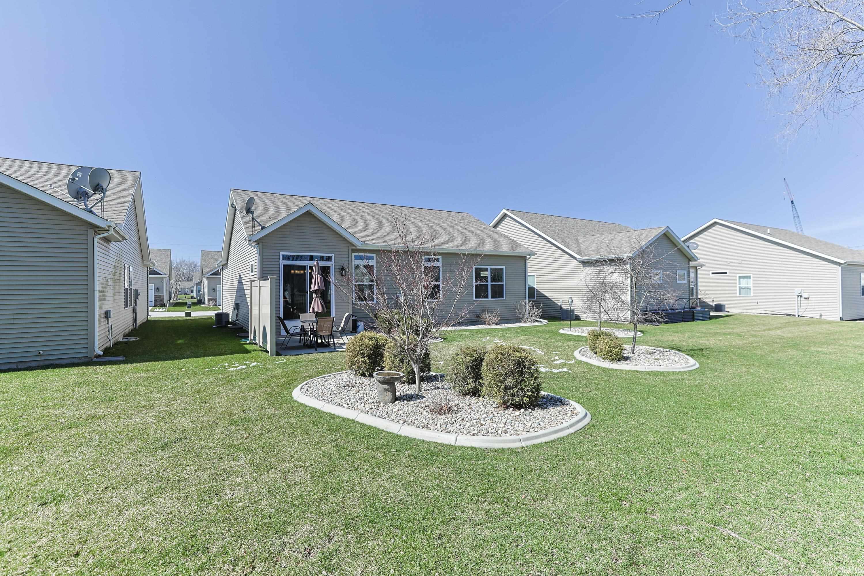 Welcome to this exceptional Craftsman-style villa in the highly sought-after Reverwood Villas community! Built just 8 years ago by award-winning Devine Builders, this meticulously maintained home offers effortless main-floor living paired with timeless design and modern comfort. Featuring 2 bedrooms and 2 full baths, the open-concept layout is enhanced by soaring vaulted ceilings and stylish finishes throughout. The beautifully designed kitchen is both functional and inviting, complete with a large pantry and a full complement of appliances, including washer and dryer. Custom blinds and all drapery are also included, adding to the home’s move-in-ready appeal. The oversized primary suite is a true retreat, boasting a spacious en suite bath and generous walk-in closet. A split-bedroom floor plan provides privacy, with the second bedroom and full guest bath ideally situated at the front of the home. The spotless full basement is already plumbed for a future bath and offers endless potential for additional living space tailored to your needs. Step outside to a thoughtfully landscaped backyard, professionally designed to attract birds and butterflies—perfectly enjoyed from the patio. The HOA enhances the low-maintenance lifestyle by covering lawn care, irrigation, snow removal, gutter cleaning, and front landscaping. A rare opportunity to enjoy refined villa living in a premier location—this home truly has it all!