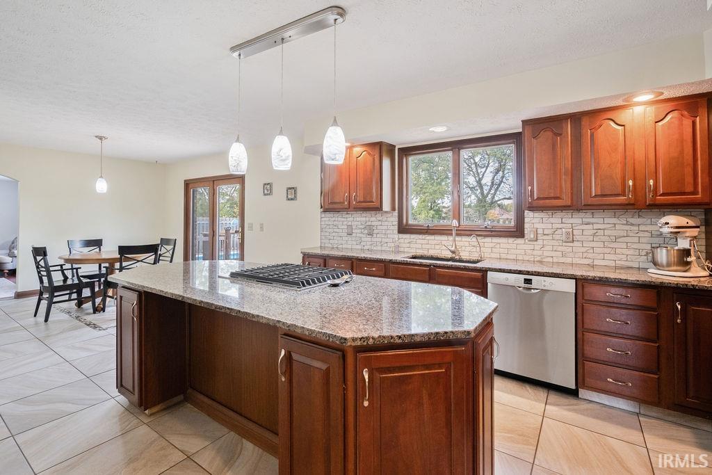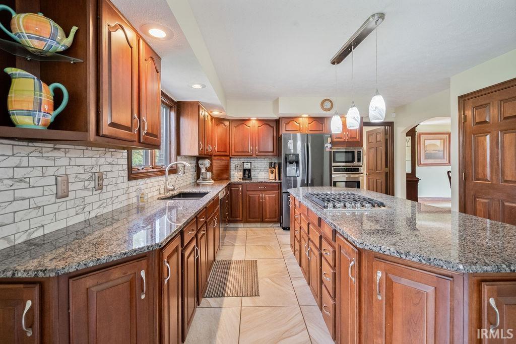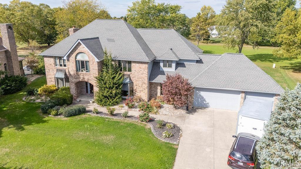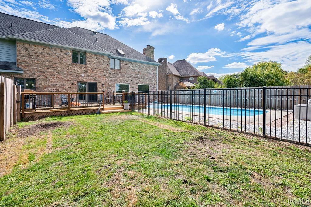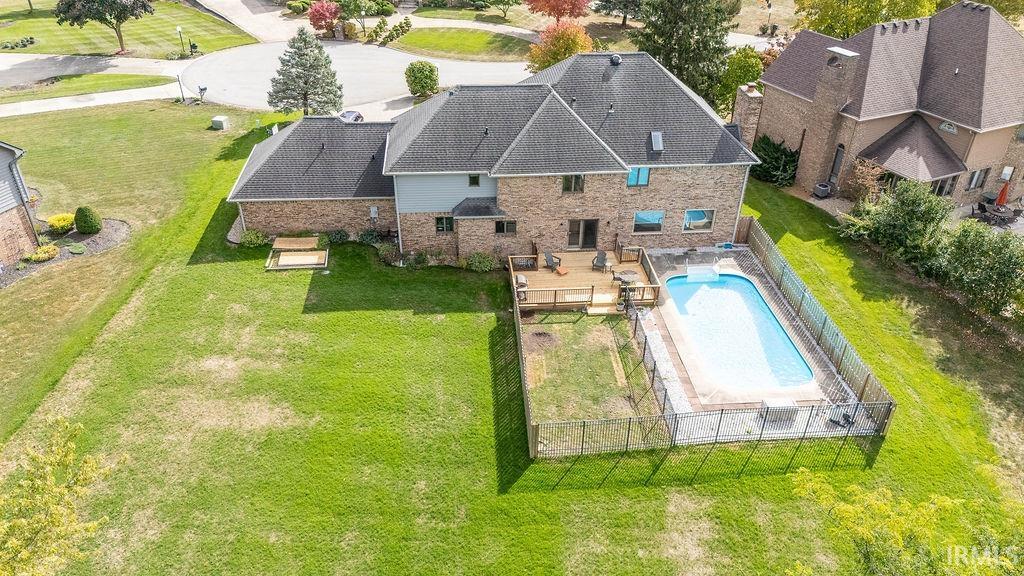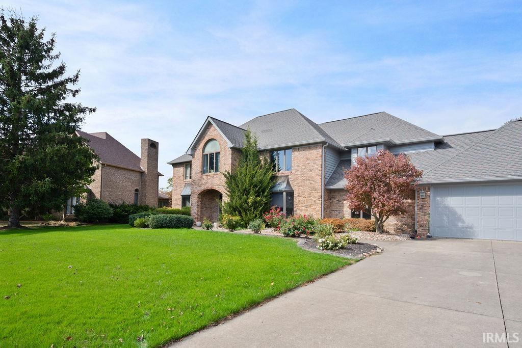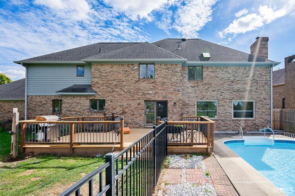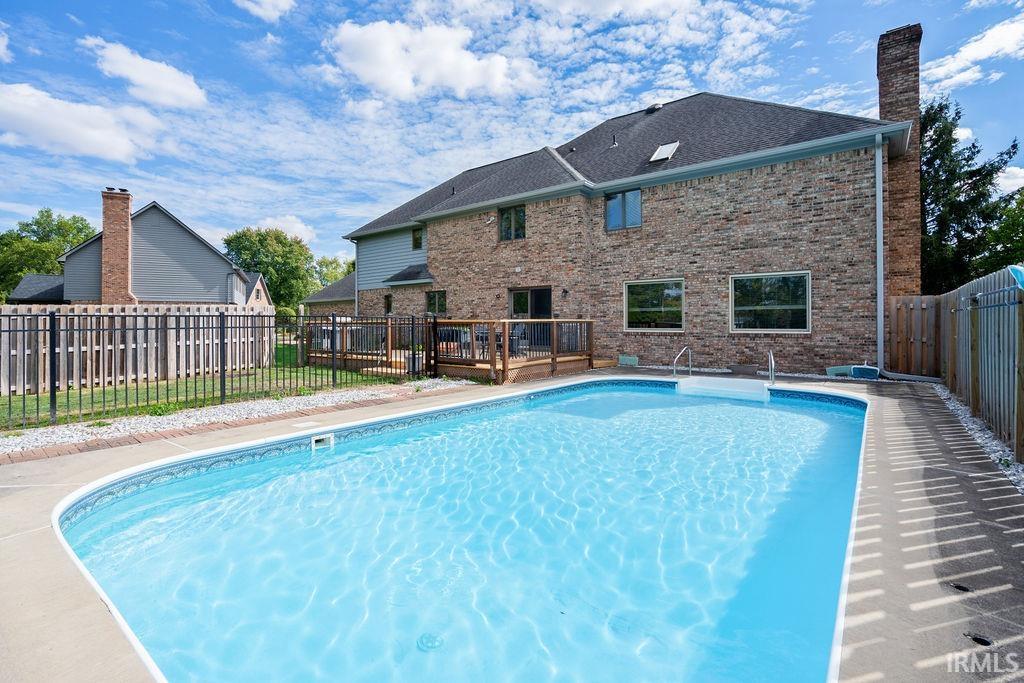 Welcome to this beautiful brick 2-story home with a full finished basement, located in the highly desirable Moors of Chippendale Subdivision and Western School District! Nestled on over half an acre, this home offers scenic views of hole #6 at Chippendale Golf Course and features an in-ground pool, perfect for entertaining or relaxing with family and friends. Step inside to a grand foyer entry that leads into a thoughtfully designed main level. The home office features built-in bookshelves, ideal for remote work or study. Enjoy gatherings in the spacious vaulted-ceiling living room, elegant formal dining room, or the cozy step-down family room with a gas fireplace. The updated eat-in kitchen is a chef’s dream with granite countertops, stainless steel appliances, large island, and a built-in desk—perfect for organization or homework time. A large main-floor laundry room adds extra convenience. Upstairs, the master suite offers a luxurious retreat with a generous bedroom, spa-like bath featuring a dual sink vanity, tiled shower, jetted tub, and a walk-in closet. Three additional bedrooms are also located on the upper level, two with their own private en suite bathrooms, perfect for guests or family. The fully finished basement boasts brand new carpeting, expansive living space for a home theater, gym, or recreation area, plus ample storage. An attached 3-car garage and quiet cul-de-sac location complete this exceptional home!