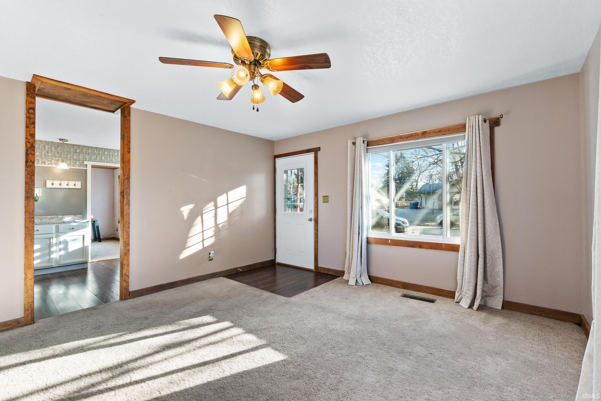 Welcome Home to the Heart of New Haven! This charming 3-bedroom, 2- full bath ranch blends location and comfort in one inviting package—just a short walk to local schools, the pool, parks, and restaurants! Offering over 1,300 square feet, the spacious and open living area features an extended layout that feels bright and airy, perfect for everyday living and easy entertaining. You’ll love the large living room (made even more open after removing a half wall!), plus an updated kitchen with new countertops, faucet, dishwasher, and microwave (2019). Additional updates include new carpet in the living room (2020), NEST thermostat (2022), water heater (2021), flooring in the second bath and laundry area (2019), and more. Bathrooms include refreshed exhaust fans and shower heads (2019 & 2024), adding comfort and convenience. Outside, enjoy a spacious patio for cookouts or relaxing evenings under the stars, while the oversized 24x24 detached garage offers incredible space for vehicles, tools, or hobbies— and the fenced backyard offers room to play or garden. Located in a friendly neighborhood with quick access to I-469/US-30, trails, shopping, and dining. Clean, well-kept, and move-in ready—schedule your showing today!