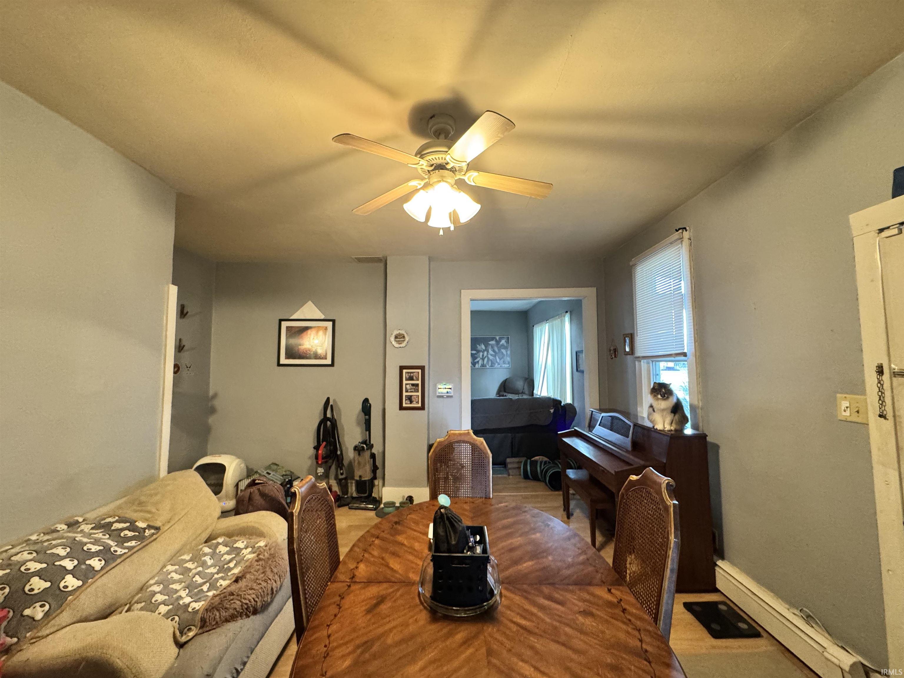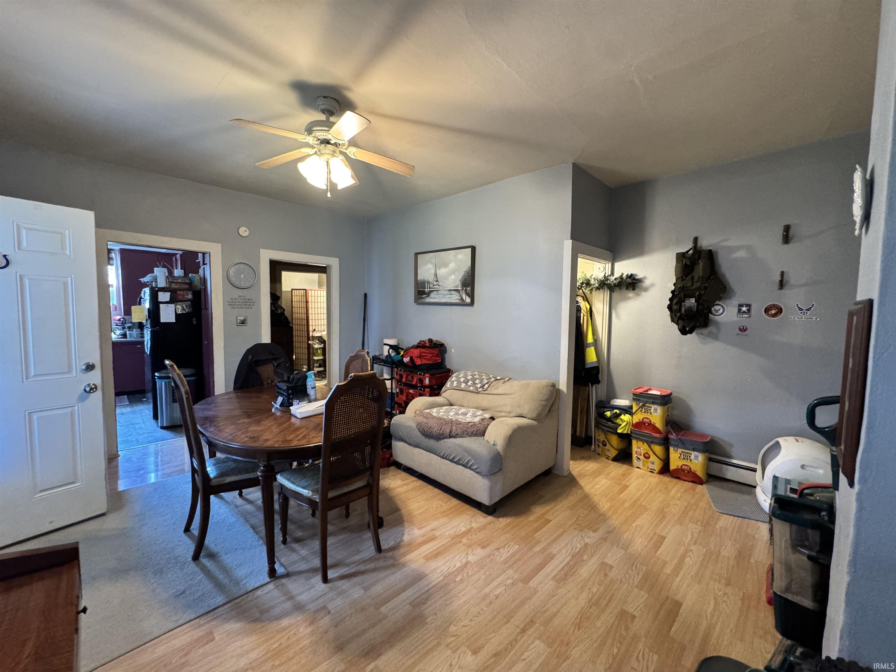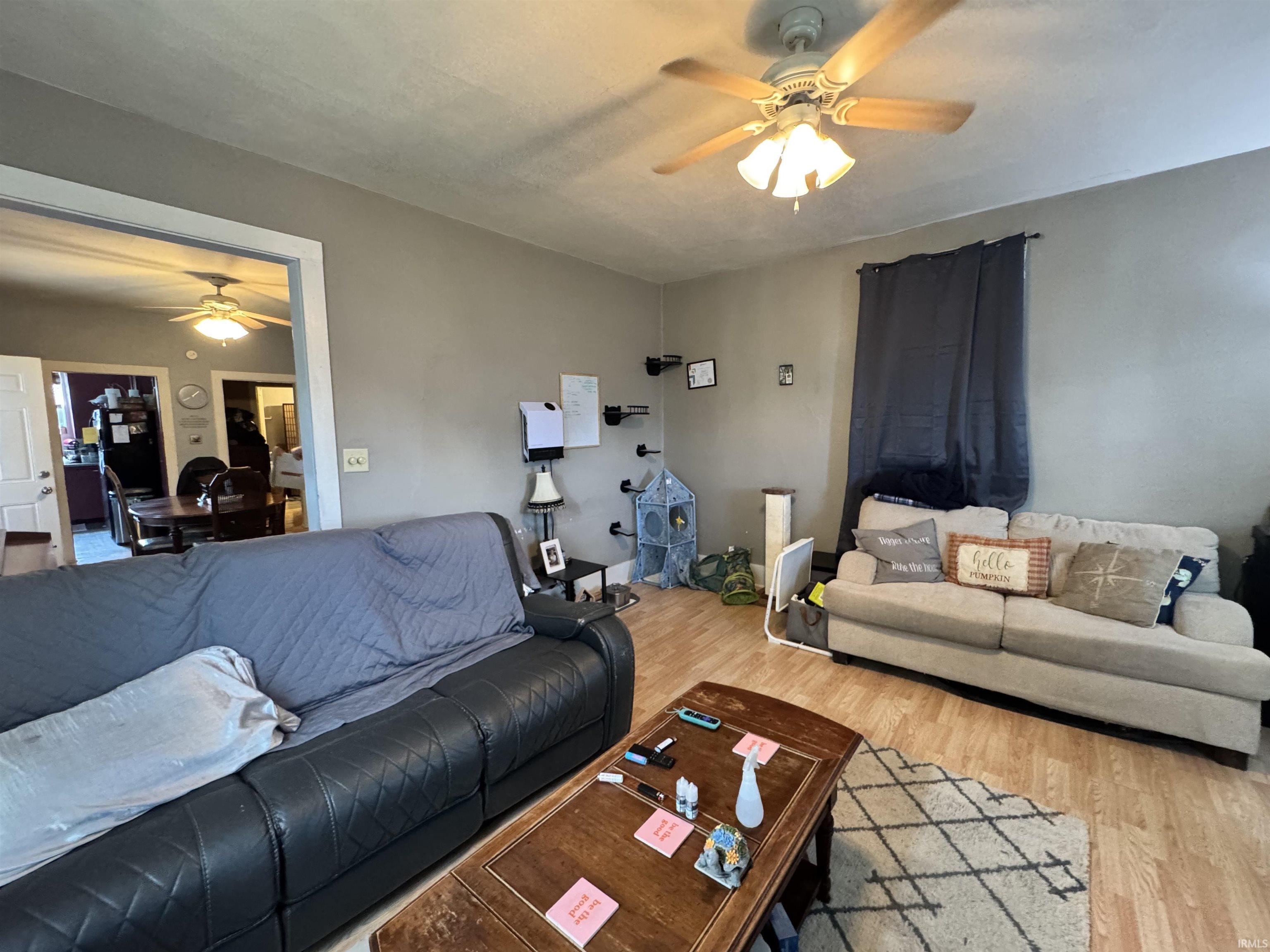 2-bedroom, 1-bathroom one-and-a-half story home offering comfort and convenience! This property features a spacious kitchen complete with refrigerator, range, and microwave. Laminate flooring flows throughout the home. Enjoy relaxing on the covered front porch or take advantage of the large backyard, ideal for outdoor activities. Off-street parking adds extra convenience. Metal roof. Seller will consider all loan types (FHA/VA/Conventional). The sale is contingent on seller finding suitable housing. AC window units are included in the sale.