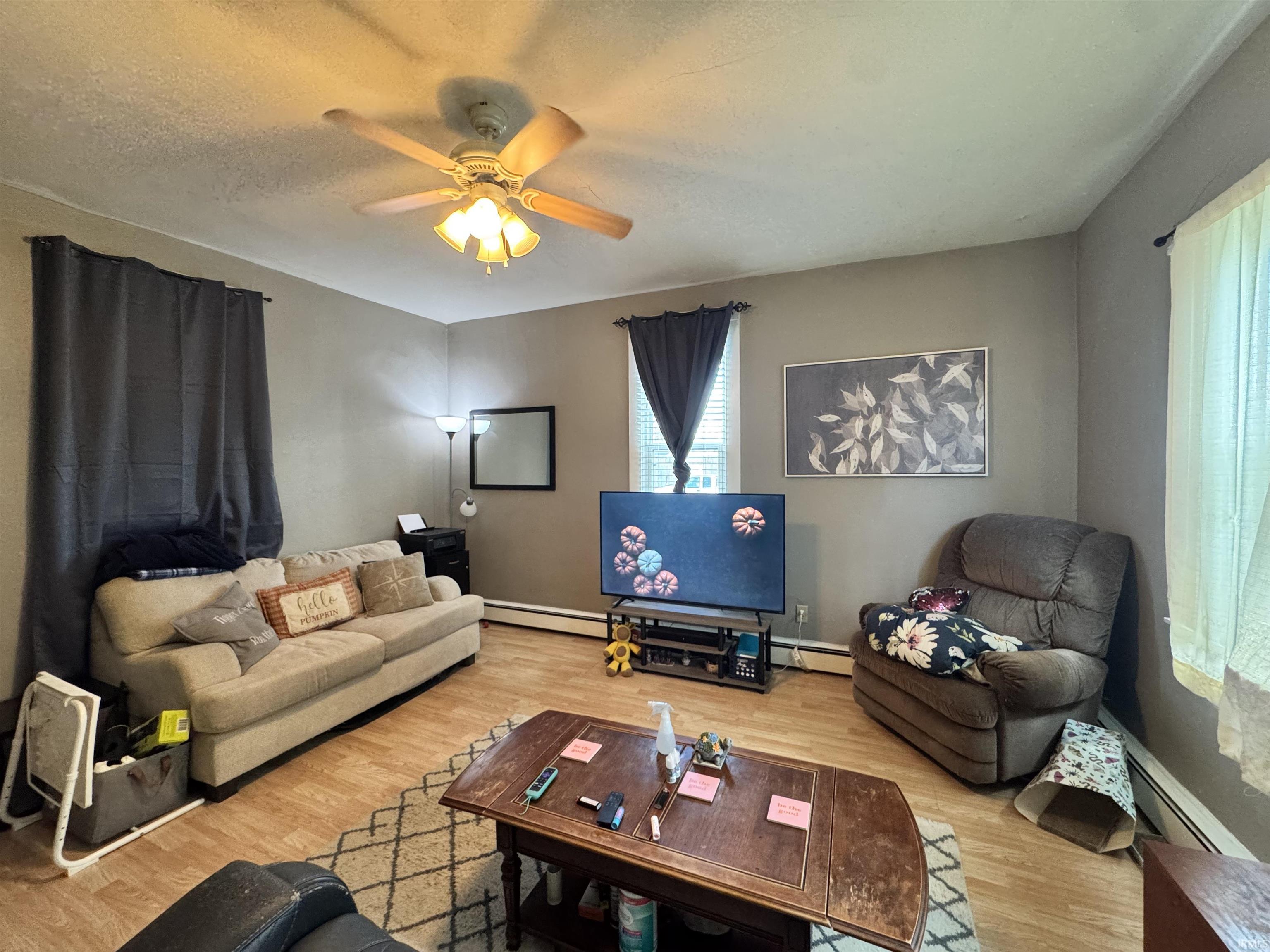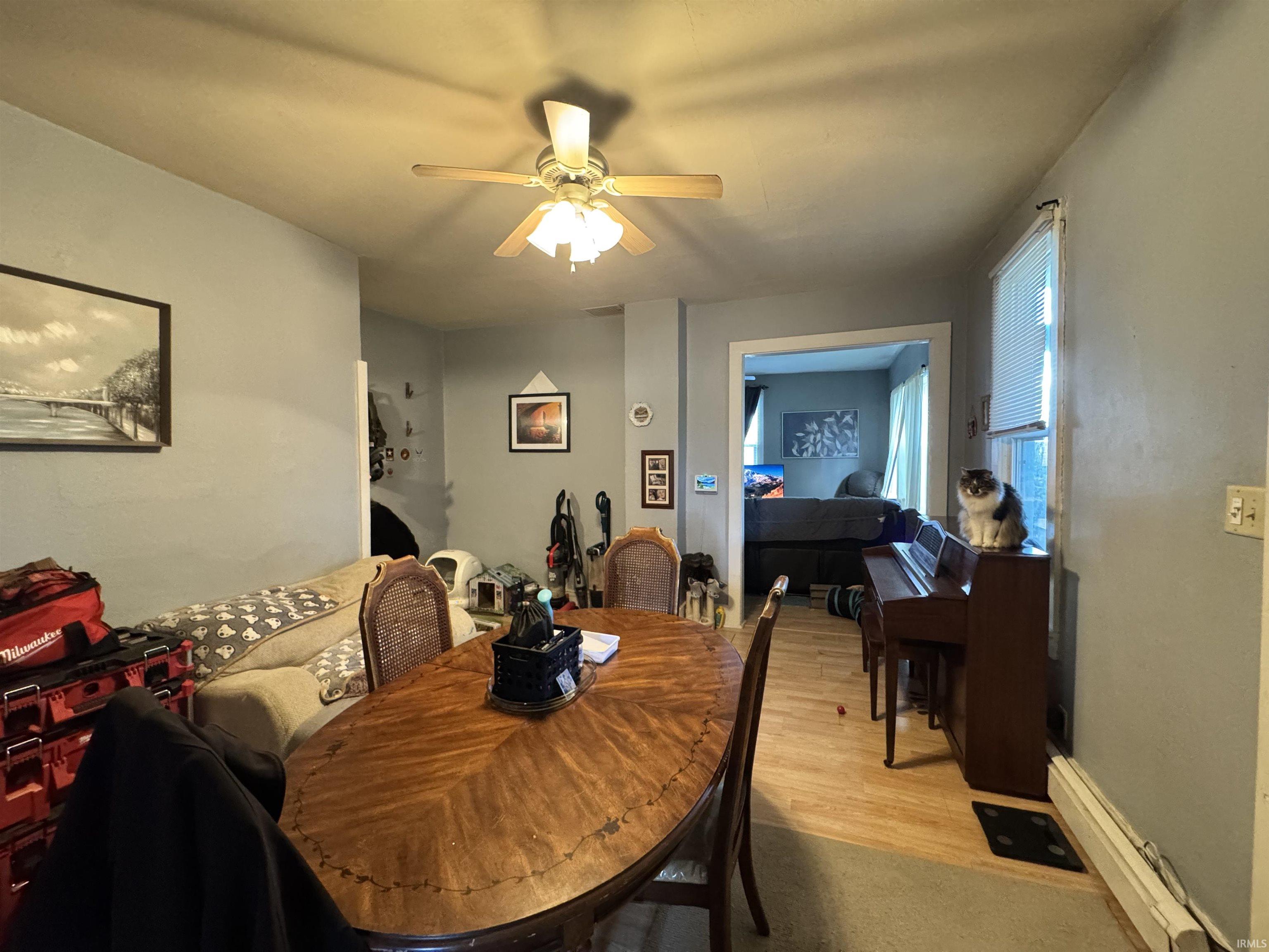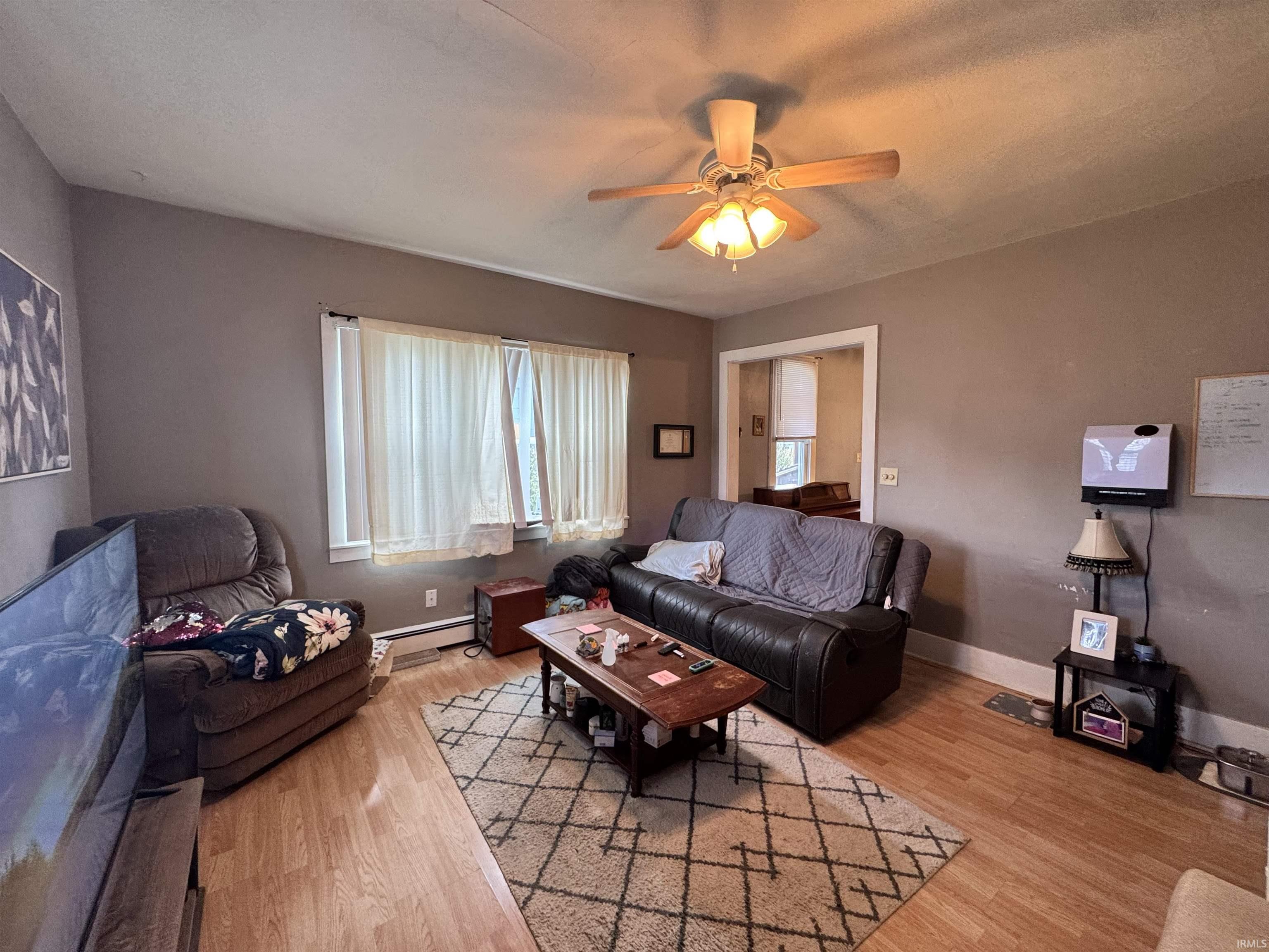 2-bedroom, 1-bathroom one-and-a-half story home offering comfort and convenience! This property features a spacious kitchen complete with refrigerator, range, and microwave. Laminate flooring flows throughout the home. Enjoy relaxing on the covered front porch or take advantage of the large backyard, ideal for outdoor activities. Off-street parking adds extra convenience. Metal roof. Seller will consider all loan types (FHA/VA/Conventional). The sale is contingent on seller finding suitable housing. AC window units are included in the sale.