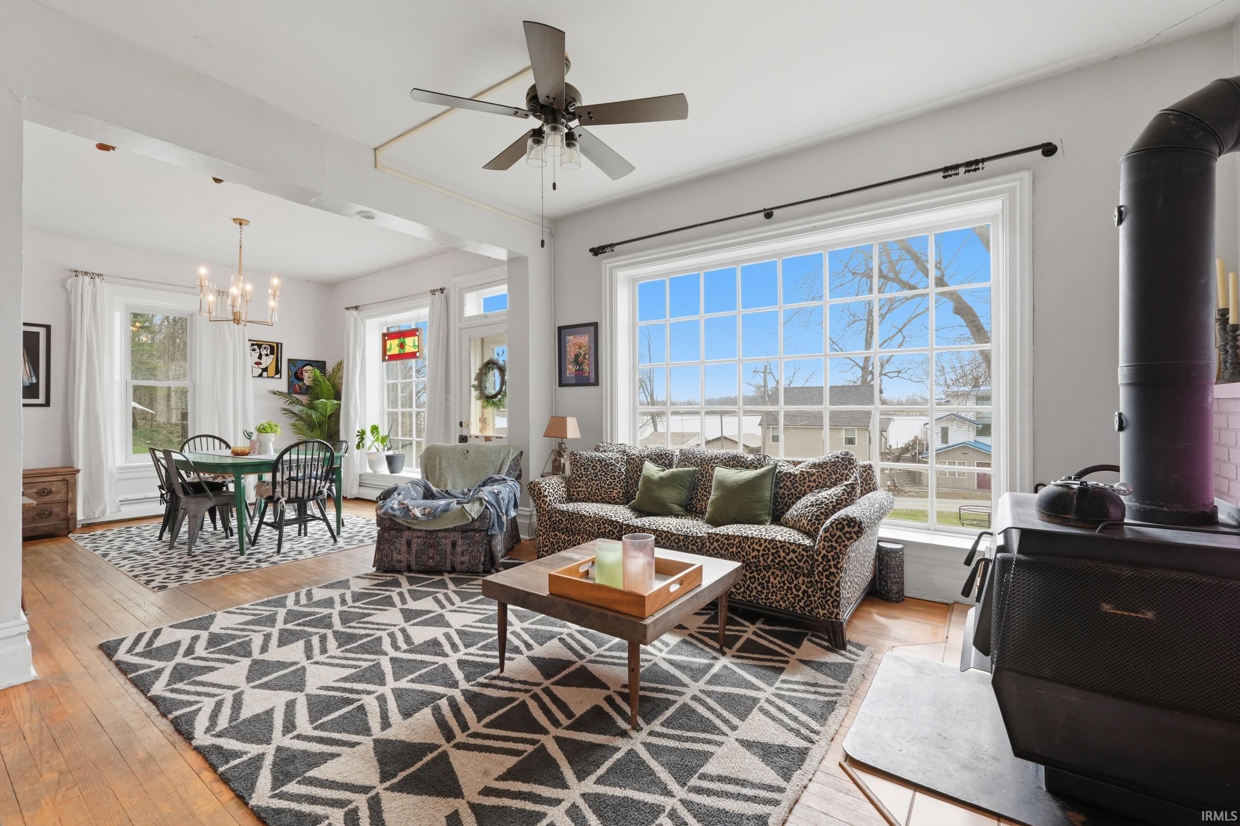 Historic 4 bedroom 1 1/2 bath home with some modern style. Large over 2 acres property with garage. New windows all throughout the house. House has multiple heating options. Beautiful view overlooking Diamond Lake.
