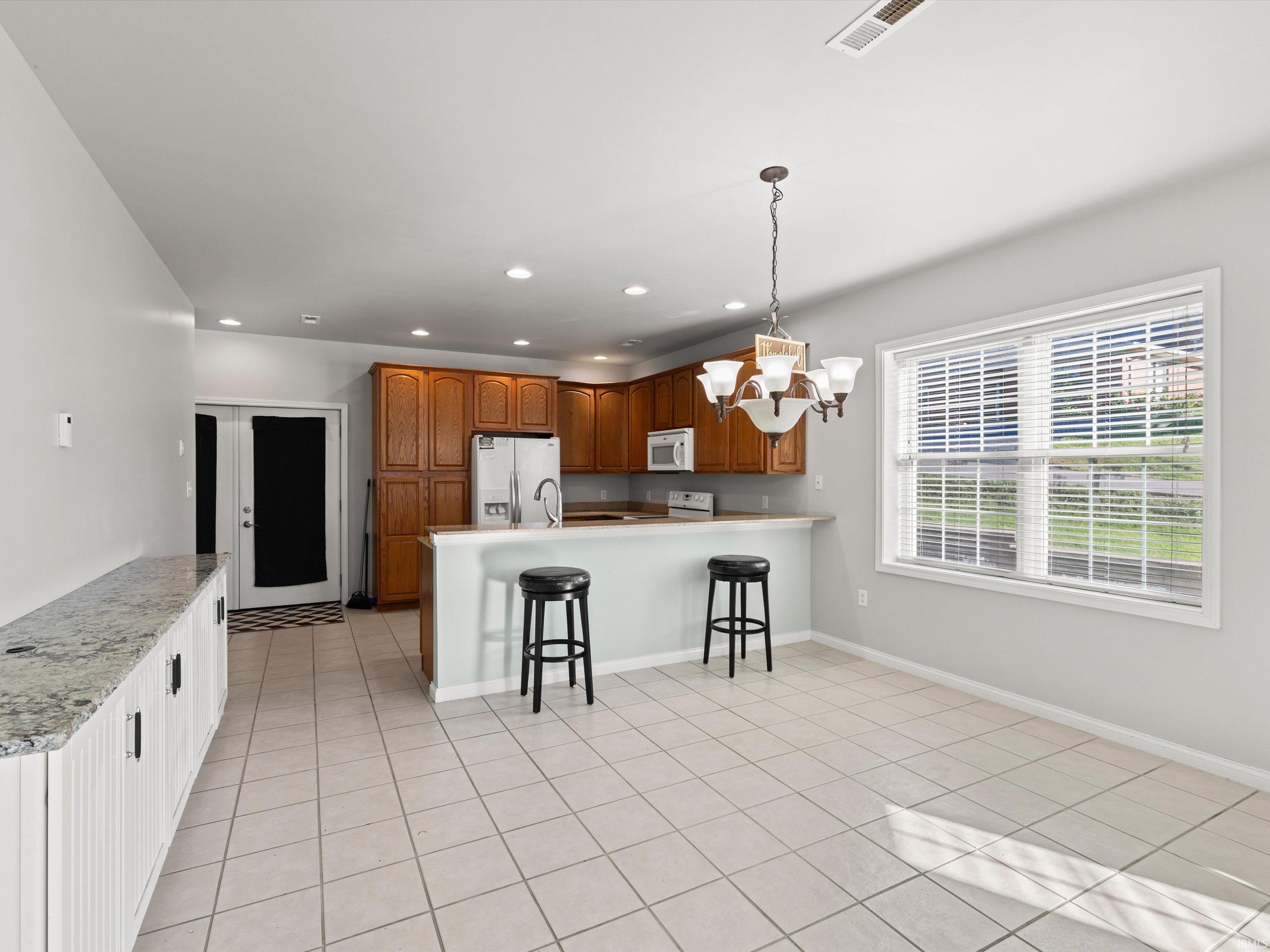 Fall in love with this beautifully updated 3-bedroom, 2-bathroom home located in the heart of downtown Newburgh—just steps from the Rivertown Trail and all your favorite shops and restaurants! Inside, you'll find an open-concept layout with soaring 9-foot ceilings, radiant heated floors in the living room, and a kitchen featuring granite countertops, a coffee bar, and all appliances included (plus washer & dryer!). The split-bedroom design offers two bedrooms on the main level and a private owner’s suite upstairs with a walk-in closet, double vanity, relaxing jacuzzi tub, and all the space you need. Enjoy your mornings on the large covered front porch or unwind on the back patio with Trex decking in the evenings. Main-level laundry, modern updates, and a prime walkable location make this the perfect Newburgh find. Move in ready with immediate possession!