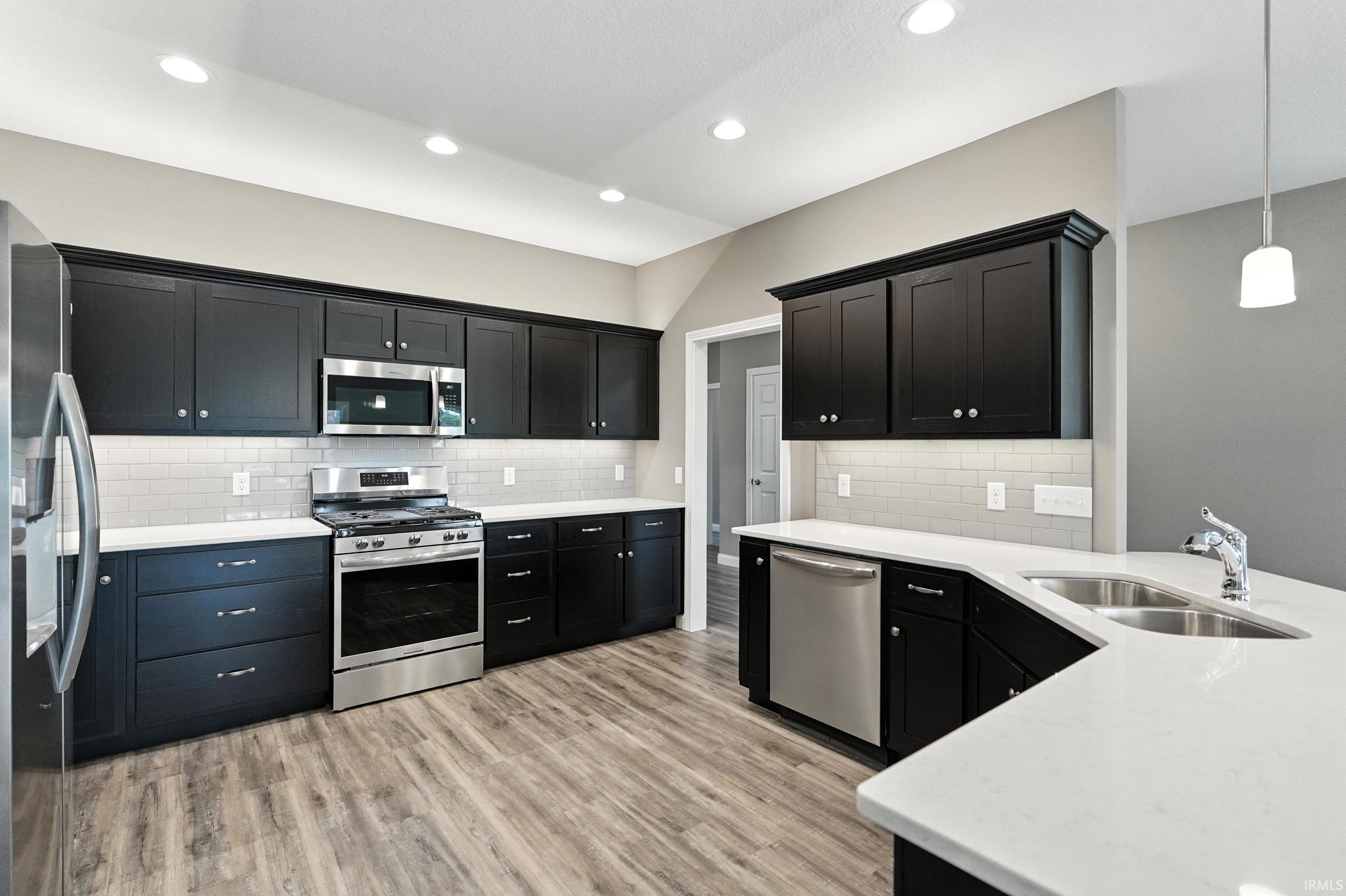The MISSOURI built by MAJESTIC HOMES in Southwest Allen County Schools. This split bedroom ranch home on a cul-de-sac lot backs to a nice wind row of trees. Covered Front Porch walking into the foyer with LVP flooring that opens to the Office/Den with Glass french doors. Open Kitchen, Dining area and Great Room. A very large mud room/laundry rooms with lockers, a fantastic spacious primary bedroom and bath. Screened in Room and Covered porch, 3-car garage. A few of the many features in this home are soft close doors and drawers, tile backsplash, over/under cabinet lighting, quartz counter tops with walk-in pantry.
